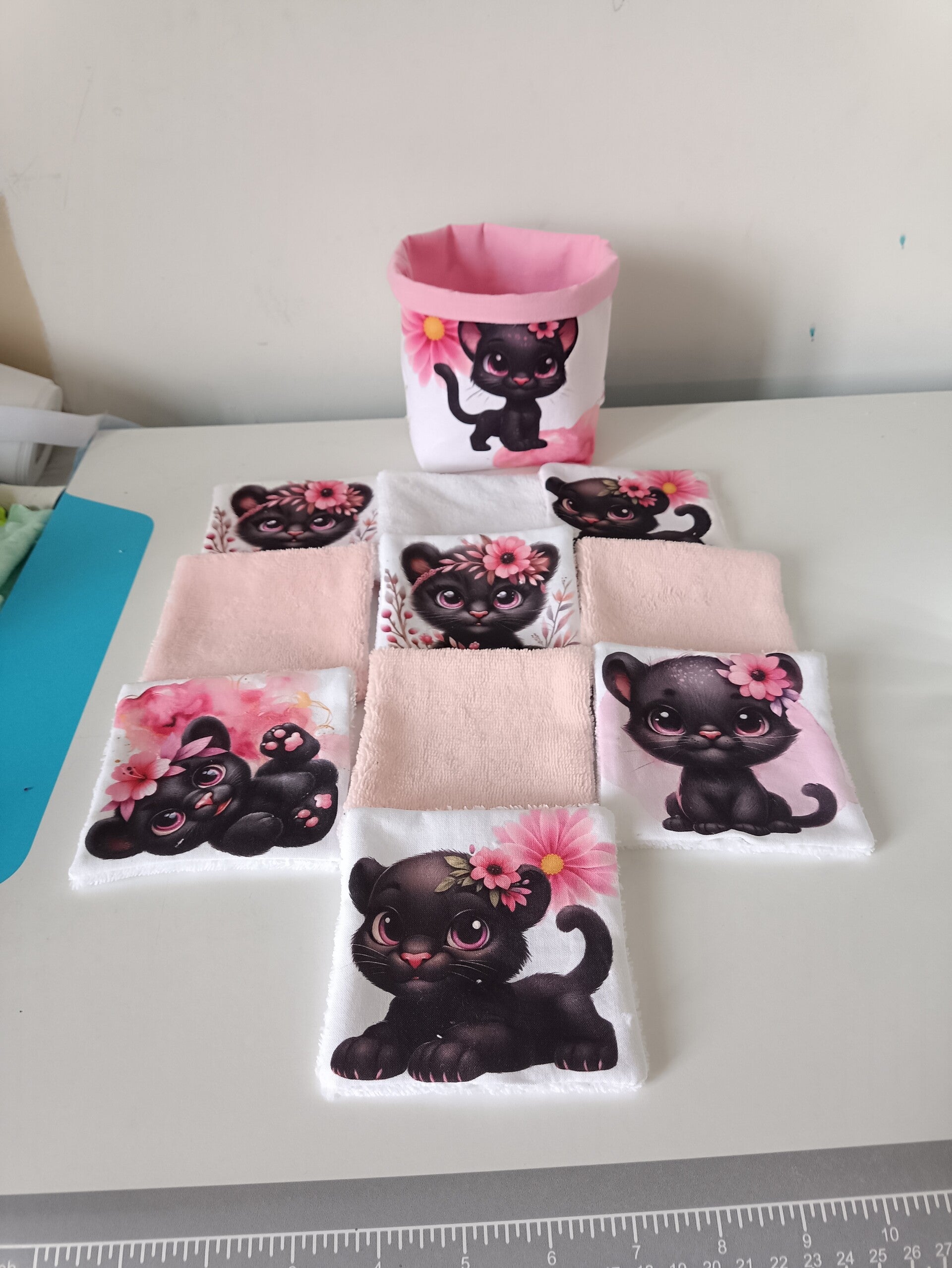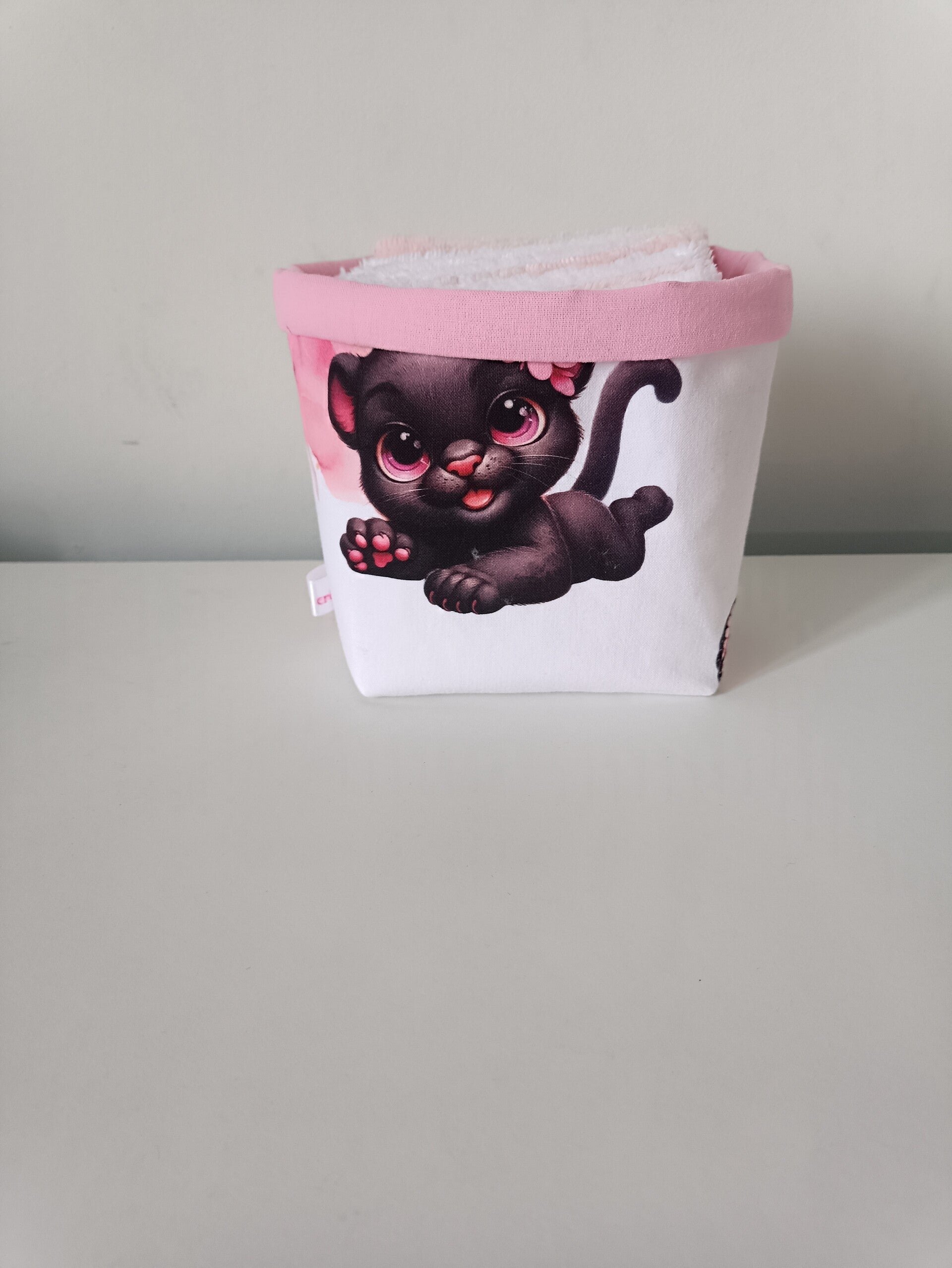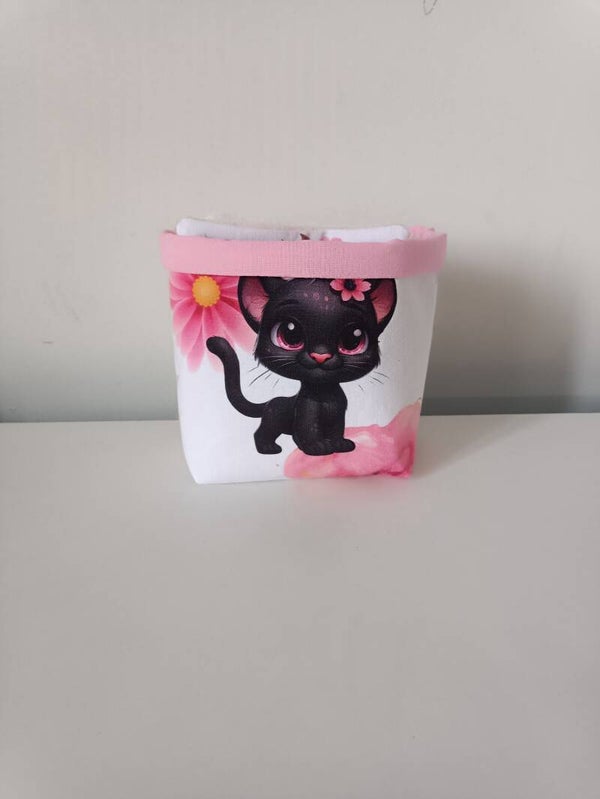 Lingettes panthère rose avec sa panière.