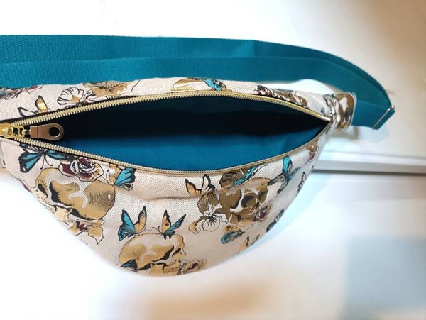 Sac banane tête de mort bleu