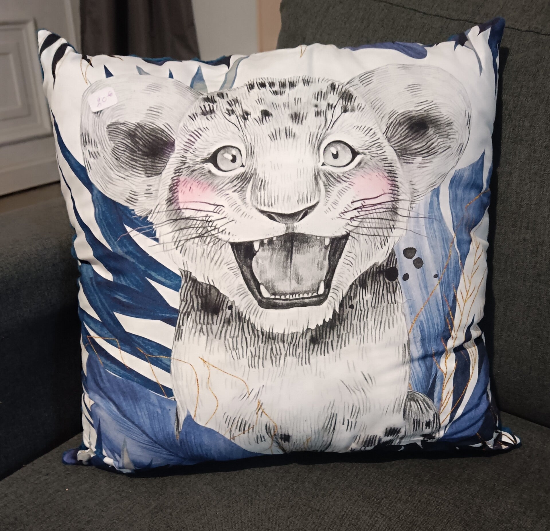 Coussin lion bleu