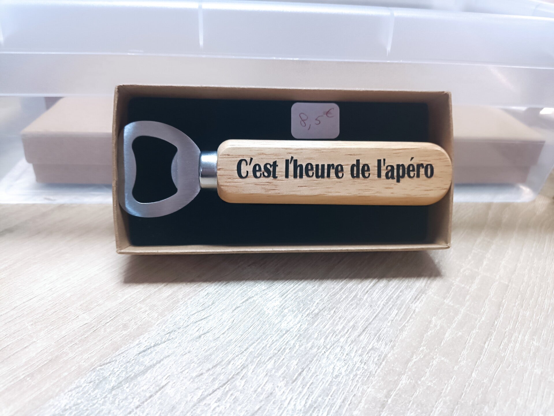 Décapsuleur en bois, personnalisation au vinyl.